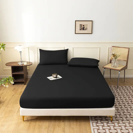 Super Soft Glace Cotton All Round Elastic Fitted Double Bed Bedsheet with 2 Pillow Covers-72x78x8